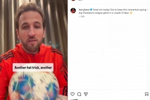 體育資訊12月7日訊 拜仁在本輪德甲5-0完勝斯圖加特,凱恩替補上演帽子戲法。他也在賽后通過社媒紀念。