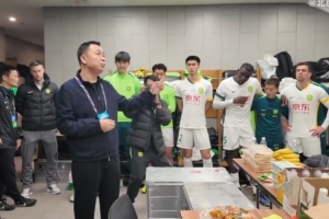 足協(xié)杯決賽賽前,北京國(guó)安足球俱樂(lè)部董事長(zhǎng)周金輝來(lái)到球隊(duì)更衣室,為球隊(duì)送上鼓勵(lì)。