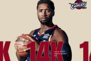 上半場米切爾拿到8分,生涯總得分突破14000。