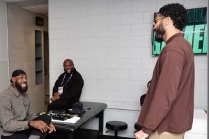 本場比賽,詹姆斯和塔圖姆都因傷沒有出戰(zhàn),不過他們進(jìn)行了一場會面。