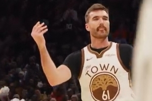 在本場比賽中,斯潘塞在命中一記三分后朝勇士替補席比出數錢的姿勢慶祝,因傷缺陣的庫里轉發了這個視頻。