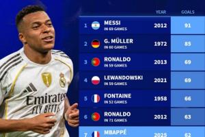 體育資訊12月08日訊姆巴佩今年進球已達62球,進入歷史前十,德轉盤點了足壇歷史自然年進球紀錄。