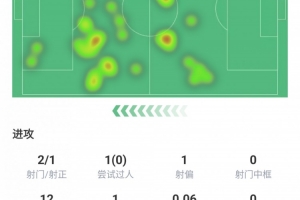 射門2次射正1次,嘗試過人1次,丟失球權(quán)12次,約為1次,預(yù)期進球0.06球
