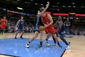 楊瀚森遭遇包夾被埃迪打到面部痛苦倒地 在地上躺了半天沒起來