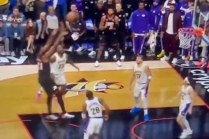 76人主場108-112不敵湖人。后1分鐘76人落后3分,恩比德背打里夫斯,到了禁區卻轉身后仰跳投不中。