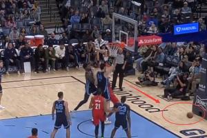 斯普利特直接進場示意想要挑戰,但灰熊突然發球直接到前場了