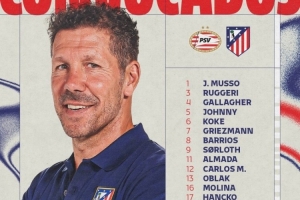 體育資訊12月8日訊 北京時(shí)間12月10日凌晨,馬競將在歐冠聯(lián)賽階段第6輪比賽中客場對陣埃因霍溫,馬競公布了此役的球員名單。朗格萊對陣畢巴肌肉痙攣,因此缺席此役,吉梅內(nèi)斯、巴埃納、略倫特繼續(xù)缺席,卡爾多索回歸。