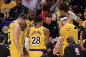 楊毅:湖人這個隊,東契奇、里夫斯、老詹,你三位一位都防不了,是吧?球隊三個頭牌一位都防不了,那你怎么防?是不是那么再加上這個首發里邊還有八村塁來說,就是他有他的特長,他能頂一下,但是你真正讓他換到外邊防一二號位,他也防不了,這四個人都防不了突破。