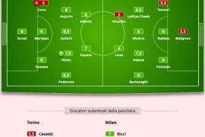 體育資訊12月9日訊 在米蘭客場3-2逆轉都靈的比賽后,《米蘭體育報》為米蘭本場比賽的出場球員進行了評分。