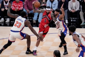猛龍本賽季至今戰績為15勝10負,場均得116.4分,場均失113.8分。上一場比賽,猛龍主場113-121不敵凱爾特人,球隊3連敗,近6場1勝5負表現低迷。英格拉姆30分4籃板3助攻,斯科蒂·巴恩斯18分11籃板8助攻,珀爾特爾10分4籃板,奎克利11分5助攻,馬穆拉什維利14分6籃板。本賽季英格拉姆場均21.2分5.8籃板3.7助攻,不過發揮欠缺穩定。猛龍面對對手強硬的壓迫防守,往往會自亂陣腳,也體現球隊不成熟的一面。RJ·巴雷特確認缺席,賈米森·巴特爾大概率缺席,賈馬爾·謝德出戰成疑。從往績看,猛龍面對尼克斯已經9連敗,球隊本場期待戰勝苦主。