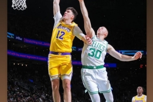 此前打凱爾特人拉拉維亞搶斷反擊一條龍,起飛滑翔單臂劈扣。湖人新秀蒂耶羅今日在INS調侃道:“這我見過他跳得最高的一次。??”