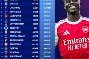 體育資訊12月10日訊 德轉更新了英超球員身價,并盤點了目前英超球隊身價榜,具體如下: