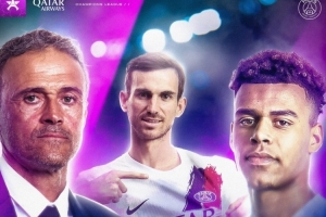 巴黎官方社媒曬出此役的賽前海報,主帥恩里克攜法比安、杜埃出鏡。