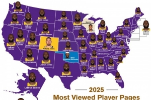 數據網站BBR顯示,其網站今年各州被瀏覽次數最多的球員分別是:詹姆斯(47個州)、亞歷山大(俄克拉荷馬州)、約基奇(科羅拉多州)、字母哥(威斯康星州)。