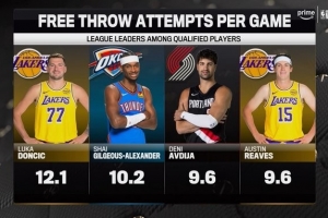 NBA杯1/4決賽今天進行,賽前轉播方曬出本賽季罰球次數前四: