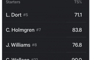 真實命中率=全場得分/[2×(全場出手次數 + 0.44 × 罰球出手次數)]