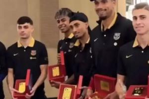 類似豪禮在巴薩更衣室里其實并不新鮮。去年巴薩全隊前往沙特阿拉伯參加西班牙超級杯時,每位球員也收到了一部黃金手機,那次是由International Data Group(IDG)公司贊助的。