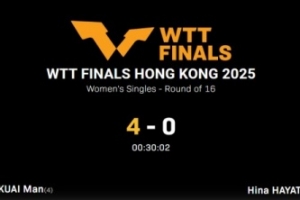 體育資訊12月11日訊 2025WTT中國香港總決賽女單1/8決賽,蒯曼零封早田希娜,晉級(jí)8強(qiáng)。