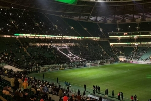 據“天天體育”報道,賽前工體北看臺國安球迷用手電筒組成了足協杯冠軍獎杯的形狀,慶祝球隊足協杯奪冠。