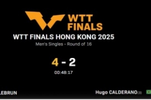 體育資訊12月11日訊 WTT中國香港總決賽男單,費利克斯·勒布倫4-2戰(zhàn)勝雨果·卡爾德拉諾,晉級8強。