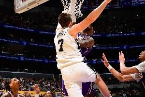 體育資訊12月11日訊 今日NBA杯1/4決賽,湖人主場(chǎng)不敵馬刺。次節(jié)行將結(jié)束之際,湖人進(jìn)攻回合,詹姆斯持球沖到籃下,面對(duì)馬刺中鋒科內(nèi)特,直接起跳完成單臂炸裂隔扣。
