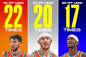 以24勝1負的戰績穩居聯盟榜首,雷霆不僅僅是贏球,他們每晚都在以游戲般的分差碾壓對手。