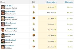 體育資訊12月12日訊 德轉(zhuǎn)更新西甲身價(jià),漲幅排行中,居萊爾以3000萬(wàn)歐的漲幅位列第1,姆巴佩漲2000萬(wàn)歐第2。