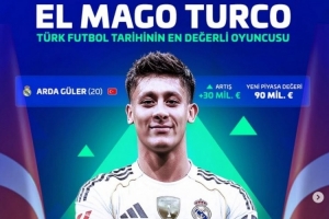 在本次更新前,德轉(zhuǎn)身價(jià)最高的土耳其球員是伊爾迪茲,身價(jià)為7500萬歐。