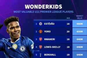 英超U21球員身價排名: