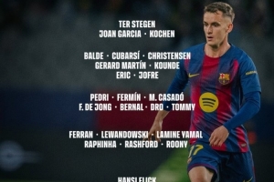 前鋒:費蘭·托雷斯、萊萬、亞馬爾、拉菲尼亞、拉什福德、魯尼·巴德吉