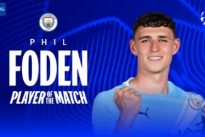 此役福登梅開二度,幫助曼城取勝,他當(dāng)選歐冠官方本場(chǎng)比賽最佳球員。