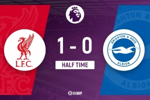 體育資訊12月13日訊 北京時間12月13日晚上23:00,英超第16輪,利物浦坐鎮安菲爾德球場迎戰布萊頓。上半場,埃基蒂克46秒帶球進場,阿利松拒單刀,戈麥斯傷退、薩拉赫替補。半場戰罷,利物浦1-0布萊頓。
