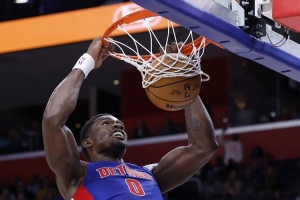 活塞內線杜倫上半場表現不錯,尤其是第二節在球隊落后時,他在內線表現活躍,不僅有空接暴扣,還有搶下前場籃板后的暴扣,幫助球隊縮小分差。