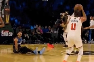 GIF-布倫森晃倒布萊克撤步三分再進(jìn)