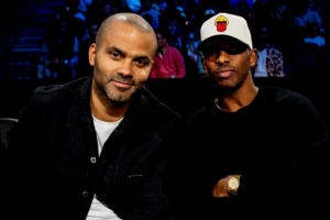本場比賽,馬刺名宿托尼·帕克也來到現場支持老東家。而和他坐在一塊看球的是也曾效力過馬刺隊的克里斯·保羅。