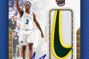 在賽后,他比賽中穿著的球鞋已經被聯盟授權方拿走并裁切了一部分,做成了僅此一張的首秀球星卡。