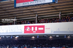 本場比賽桑德蘭主場觀眾席上分的比分牌上并未展示出紐卡的隊徽,而僅僅是以英文visitors(客隊)替代。