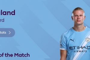 本場比賽哈蘭德梅開二度,賽后他也當(dāng)選英超官方評選出的本場最佳球員。