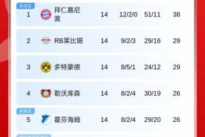 體育資訊12月15日訊 德甲第14輪基本結束,拜仁2-2美因茨仍擴大領先優勢,現9分領跑,此前第2的萊比錫本輪1-3不敵柏林聯合,第3的多特1-1憾平弗賴堡,最新積分榜如下: