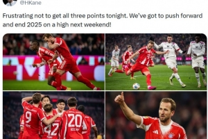 本場比賽凱恩點射破門,賽后他在社媒鼓勵球隊寫道:“很失望今晚未能全取三分,我們必須全力以赴并在下周比賽中為今年完美收官。”
