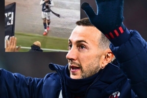 博洛尼亞前鋒貝納德斯基賽后向尤文球迷鼓掌致意,并撿起了球迷扔給他的尤文圍巾,尤文球迷高唱:“我們中的一員!”