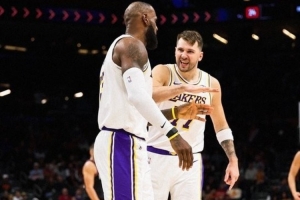 賽后,湖人發(fā)布贏球海報,東契奇和詹姆斯登上封面。
