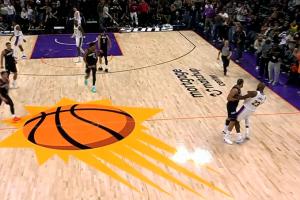 比賽最后時刻,狄龍飚中三分后不滿被詹姆斯撲倒,起身與詹姆斯對撞吃T,累積兩T被驅逐。