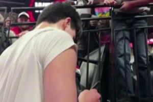 小球迷這個興奮喲!楊瀚森賽前給小男孩簽名 對方驚喜大呼哦買噶~
