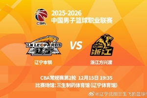 12月15日晚,遼寧男籃將在遼寧體育館迎來2025-2026賽季CBA首個主場比賽,對手是上賽季冠軍浙江方興渡男籃。