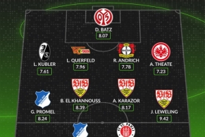 后衛:盧卡斯·庫布勒(弗賴堡,7.61分)、利奧波德·奎菲爾德(柏林聯合,7.96分)、安德里希(勒沃庫森,7.78分)、亞瑟·泰特(法蘭克福,7.23分)