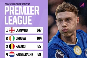 體育資訊12月15日訊 英超第16輪比賽,帕爾默復出破門,幫助切爾西主場2-0擊敗埃弗頓。帕爾默為切爾西攻入39粒英超進球,排名切爾西隊史英超射手榜第9位。