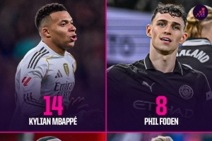 體育資訊12月15日訊 Opta統計了2023-2024賽季以來球員在五大聯賽的禁區外進球數量,姆巴佩14球最多。