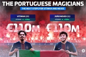 25歲的維蒂尼亞本賽季26場已貢獻6球10助攻、21歲的若昂·內維斯20場貢獻8球3助攻,兩人的身價均上漲2千萬歐元,達到1.1億歐元。