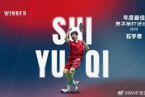 體育資訊12月15日訊 2025年世界羽聯年度最佳運動員獲獎名單公布,石宇奇當選年度最佳男子單打運動員。同時,石宇奇今年也當選運動員票選的年度最佳男子運動員。
